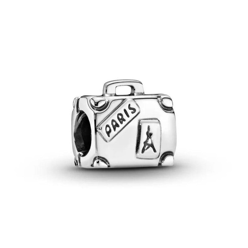- Suitcase Bead Charm Featuring Travel Stamps,