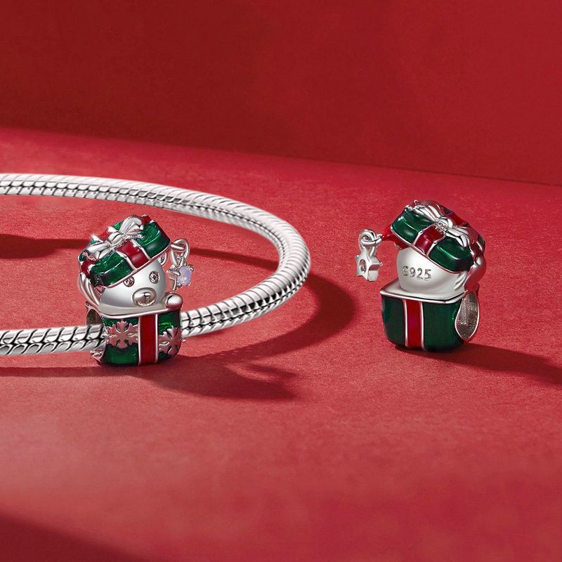 Bear In Christmas Gift Box Charm