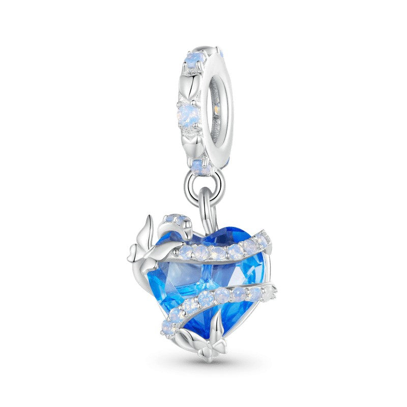 - Heart Dangle Charm Featuring Butterflies & Ribbon,