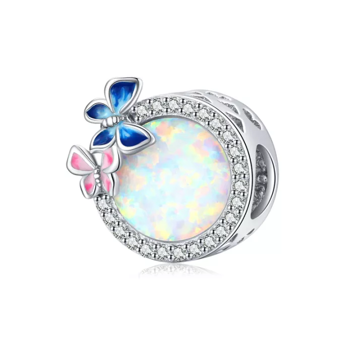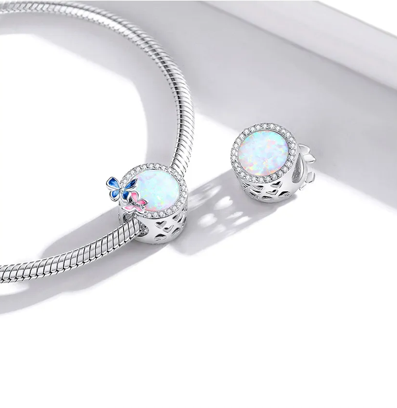 - Opal Bead Charm Featuring Butterflies & Flowers,
