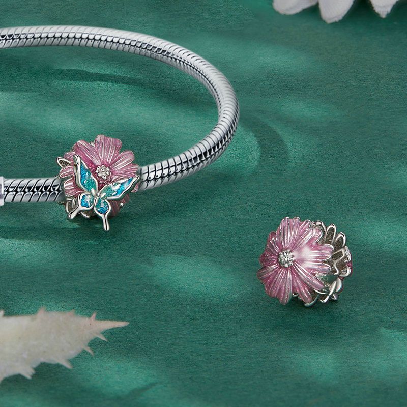 - Figural Bead Charm Featuring Butterfly On Daisy,