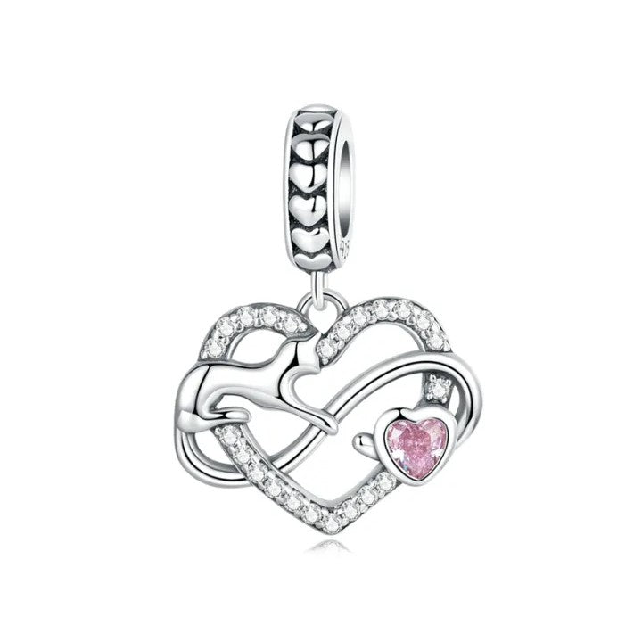 - Heart Shaped Dangle Charm Featuring Infinity Sign & Cat,