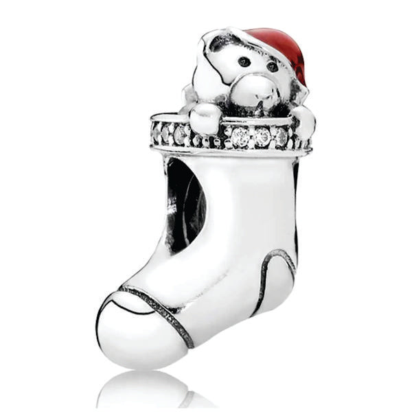 - Bead Charm Featuring Christmas Stocking With Bear,