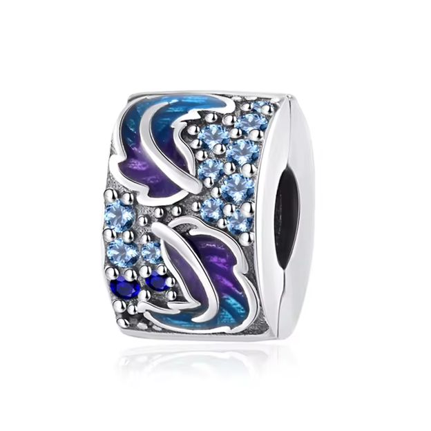 Curved Feather & Sparkling Blue Stones Clip Charm - 2