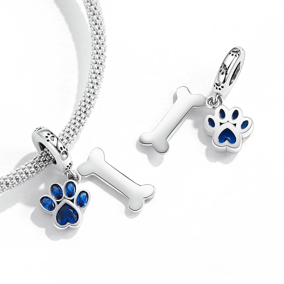 - Figural Dangle Charm Featuring Pet Paw Print & Bone,