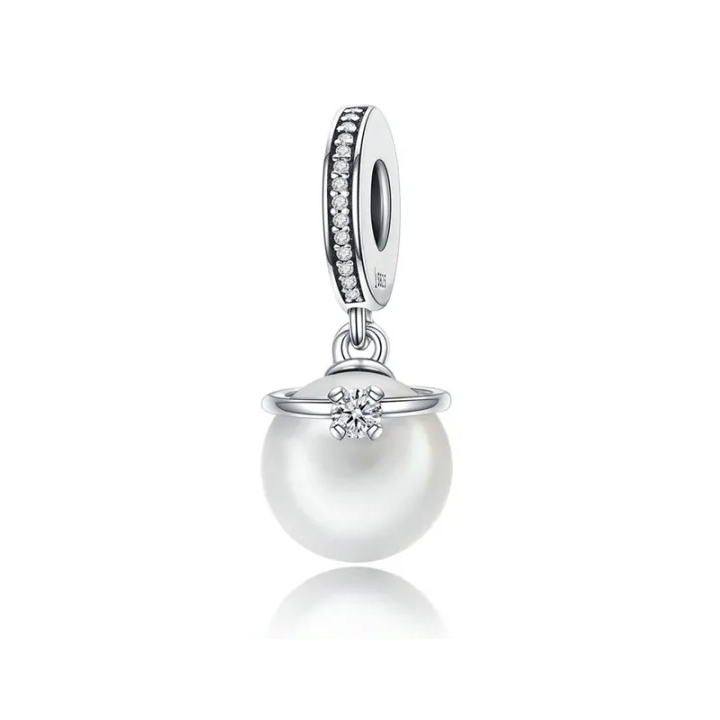 - Pearl & Miniature Wedding Ring Dangle Charm,