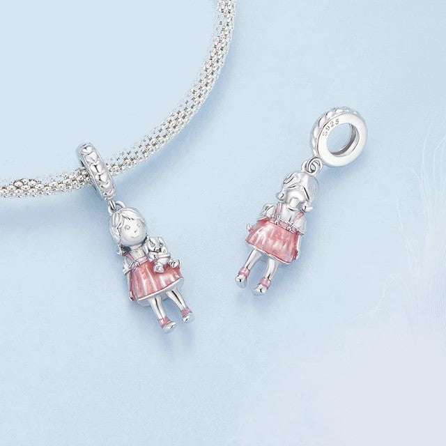 - Figural Dangle Charm Featuring Girl Holding Puppy,