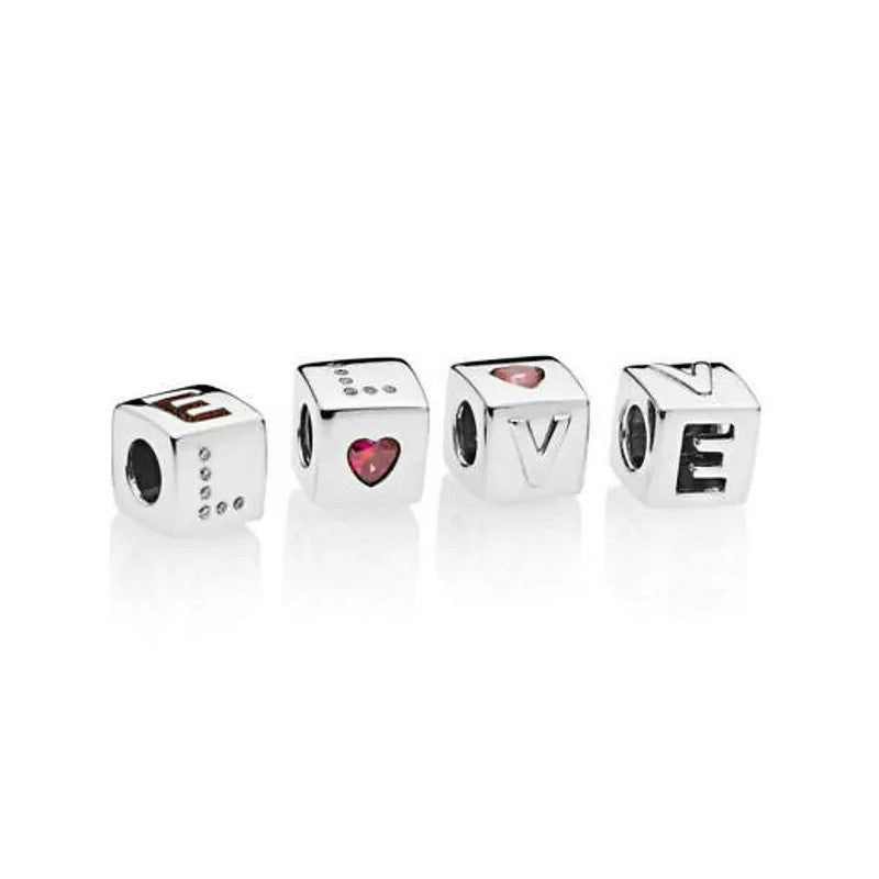 - Cube Bead Charm Featuring Letters That Spell Out Love,