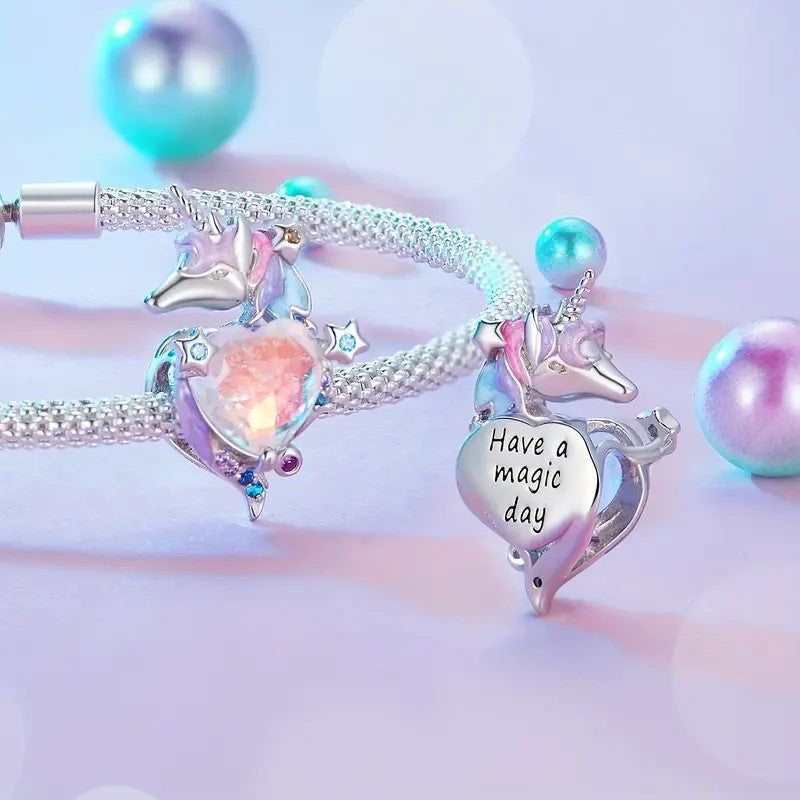 - Heart Bead Charm Featuring Unicorn,