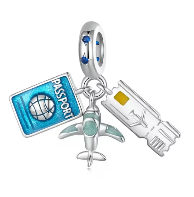 - Triple Dangle Charm Featuring Passport, Plane & Ticket Miniatures,