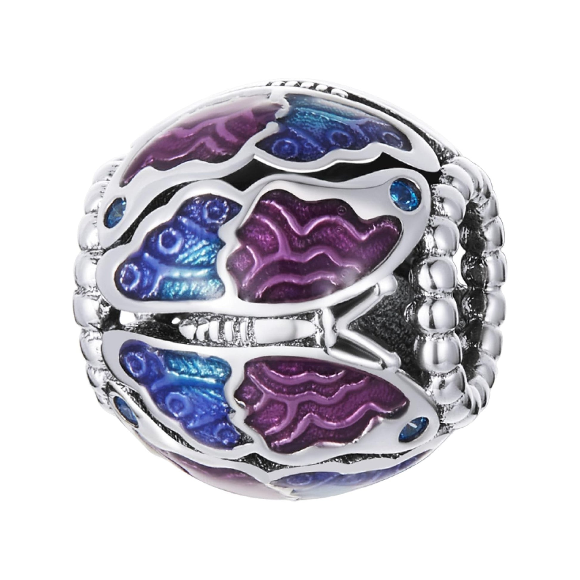 Purple and Blue Enamel Openwork Butterfly Ball Charm