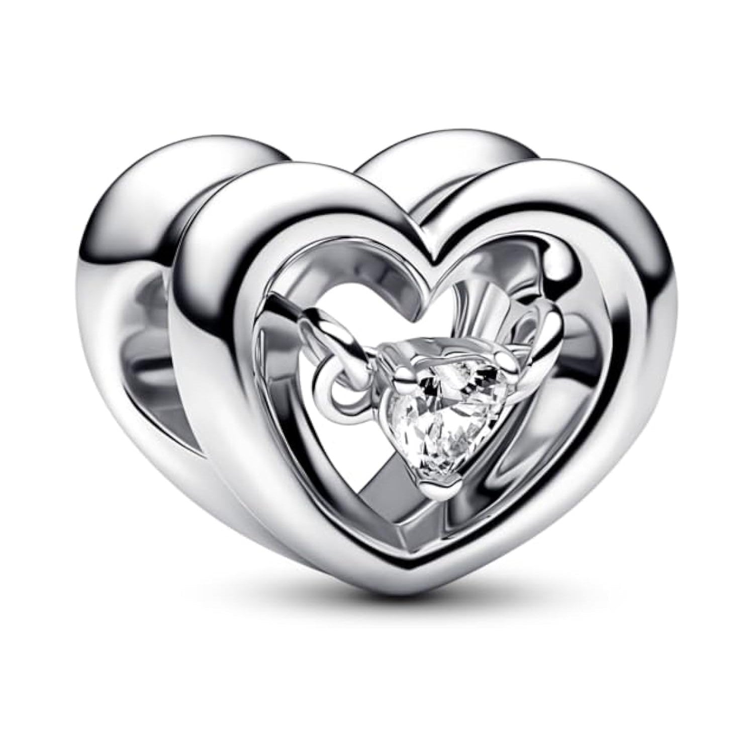 - Heart Bead Charm Featuring Floating Stone,