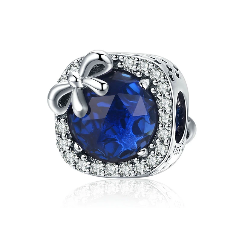 - Moonlight Blue Glass Bead Charm Featuring Bow,