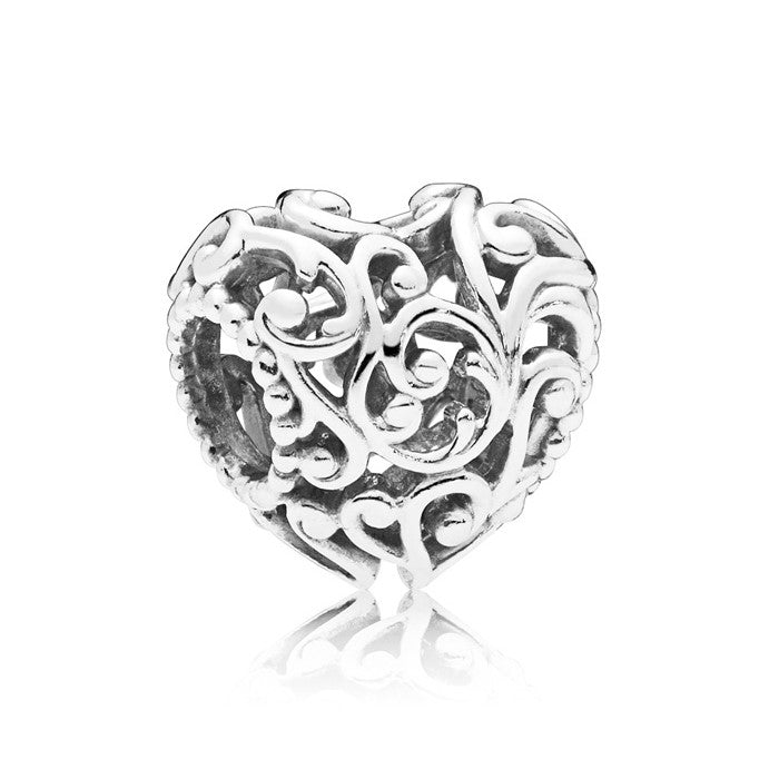 - Heart Bead Charm Featuring Swirling Motif Detail,