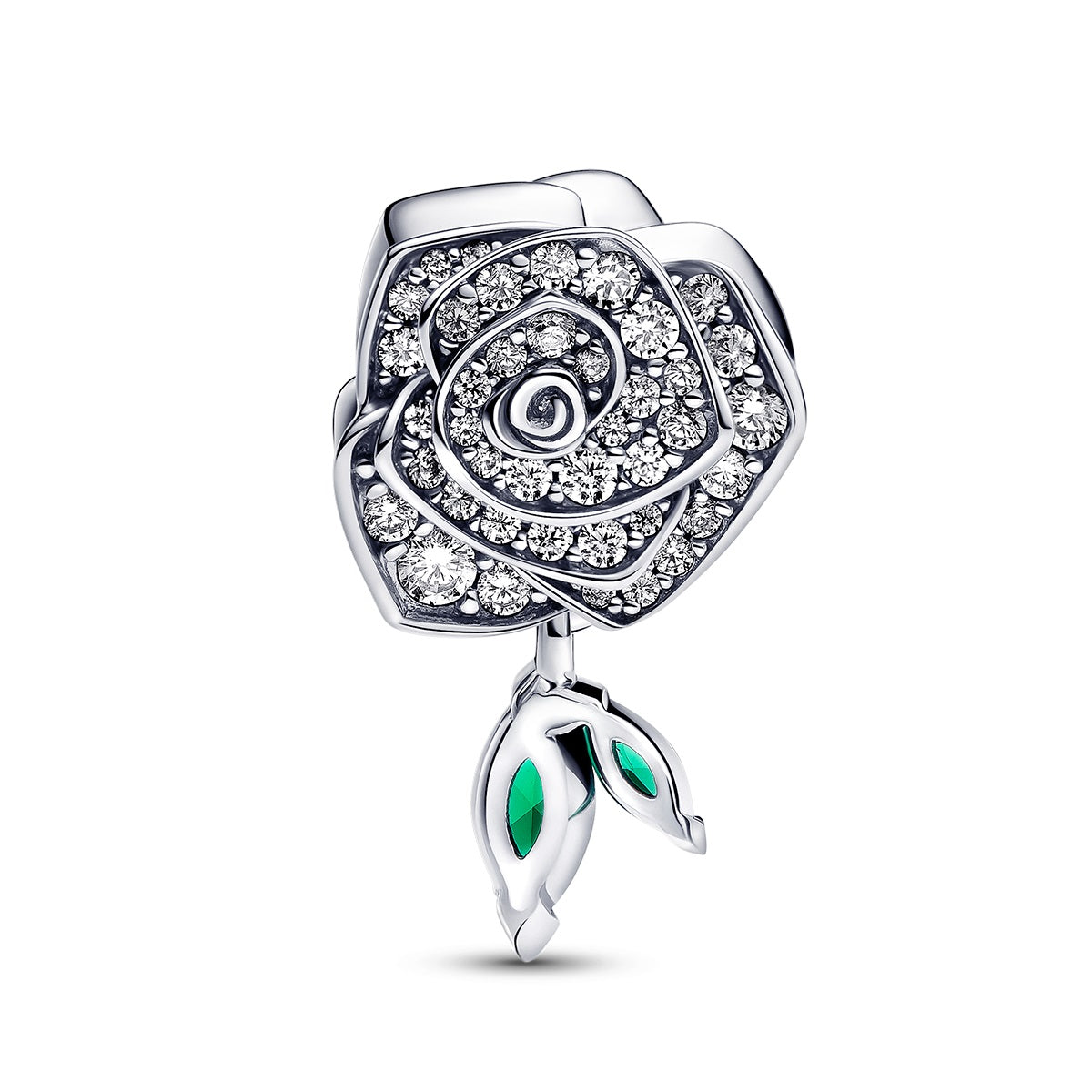 - Sparkling Rose Charm With Miniature Dangling Leaves,