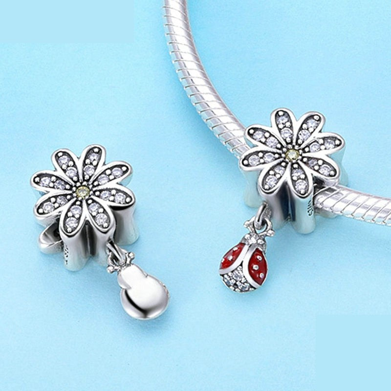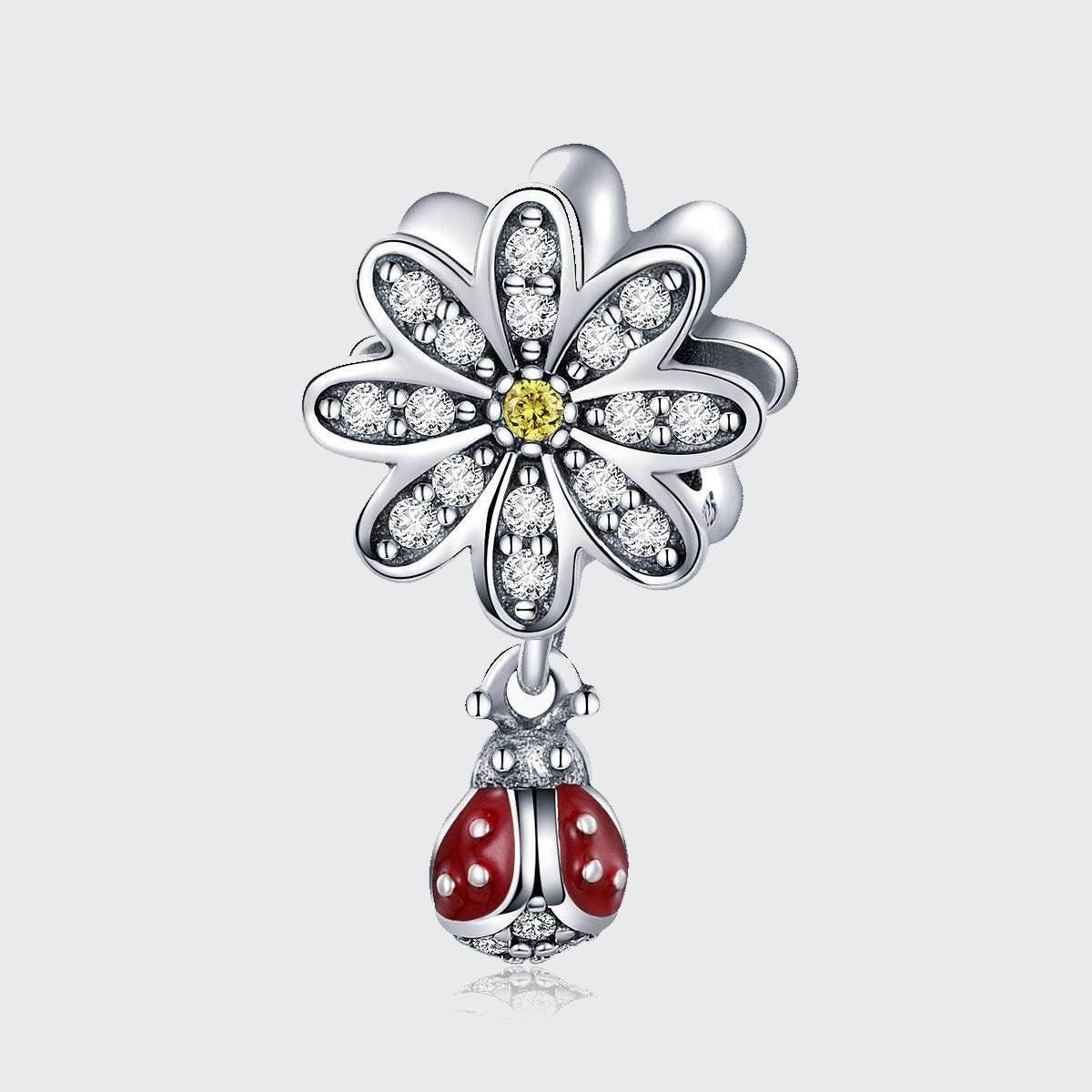 - Flower Bead Charm Featuring Dangling Mini Ladybug,