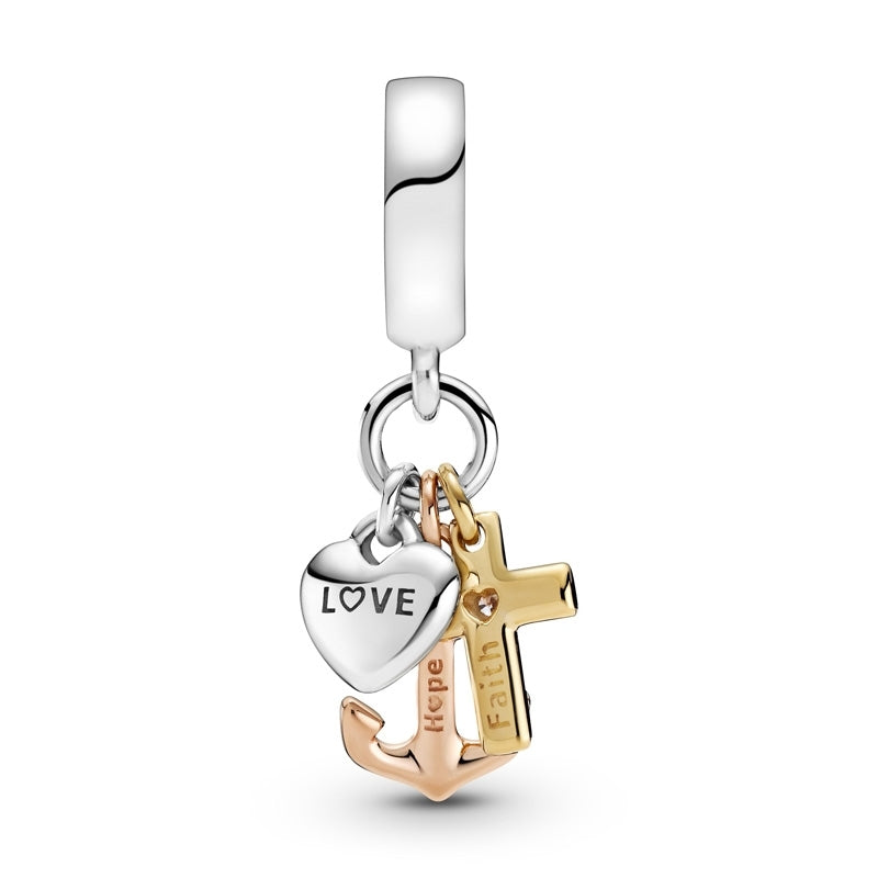 Triple-Tone Cross, Heart & Anchor Dangle Charm