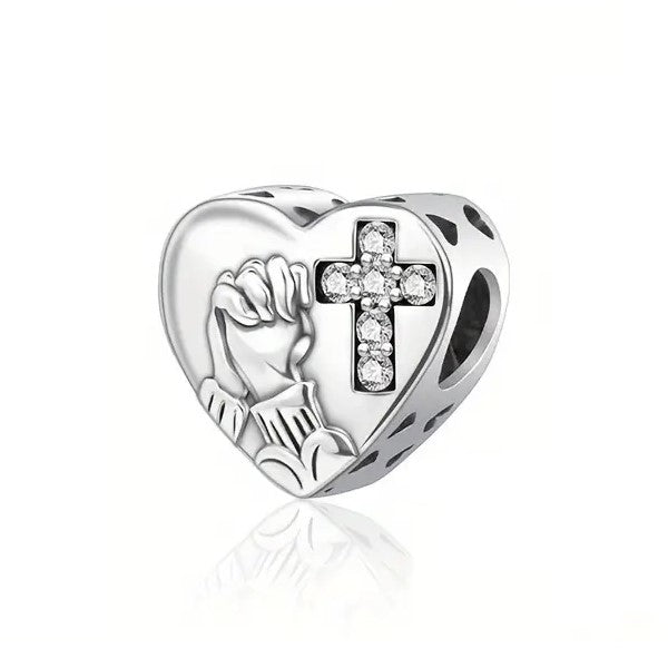 - Heart Shaped Bead Charm Featuring Praying Hands,