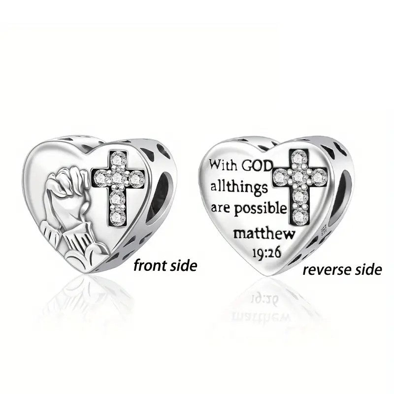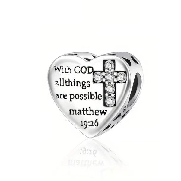 "With God all things are Possible" Heart and Cross Bead Charm